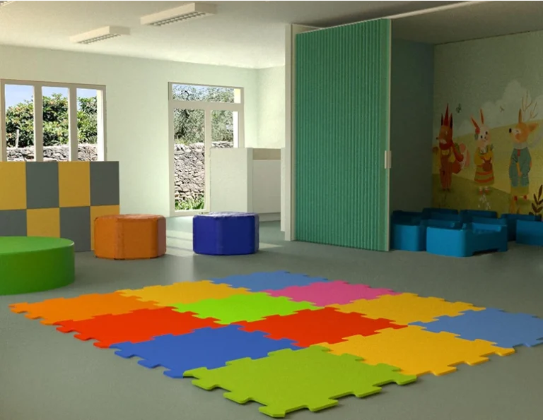 Il progetto è stato studiato per accogliere in maniera inclusiva i bambini dell’Asilo nido, con gli ambienti necessari per lo normale svolgimento delle giornate.